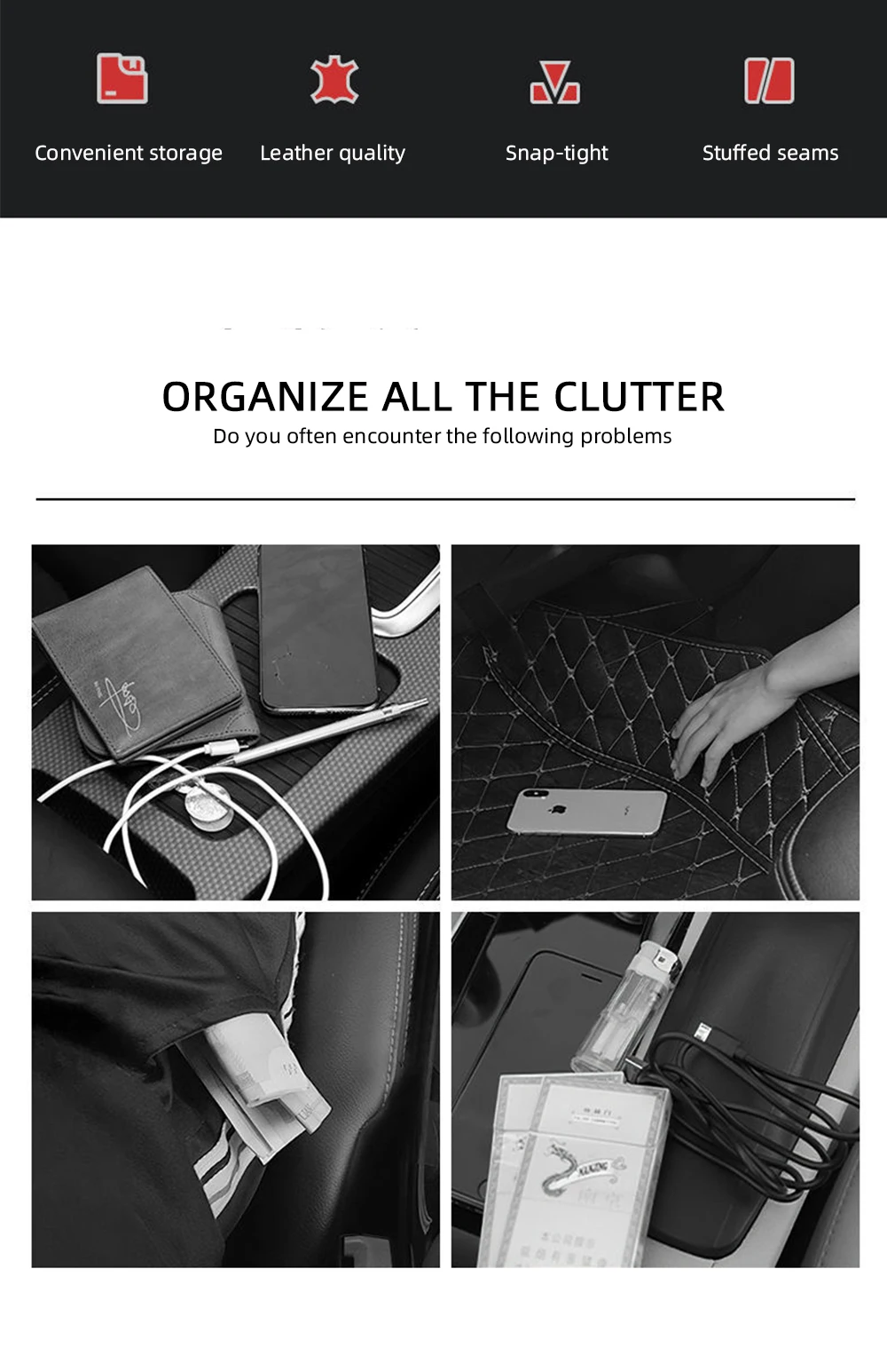 * PREMIUM MATERIAL.Car seat gap organizer is made of durable ABS plastic and top quality PU leather, which has strong impact resistance.