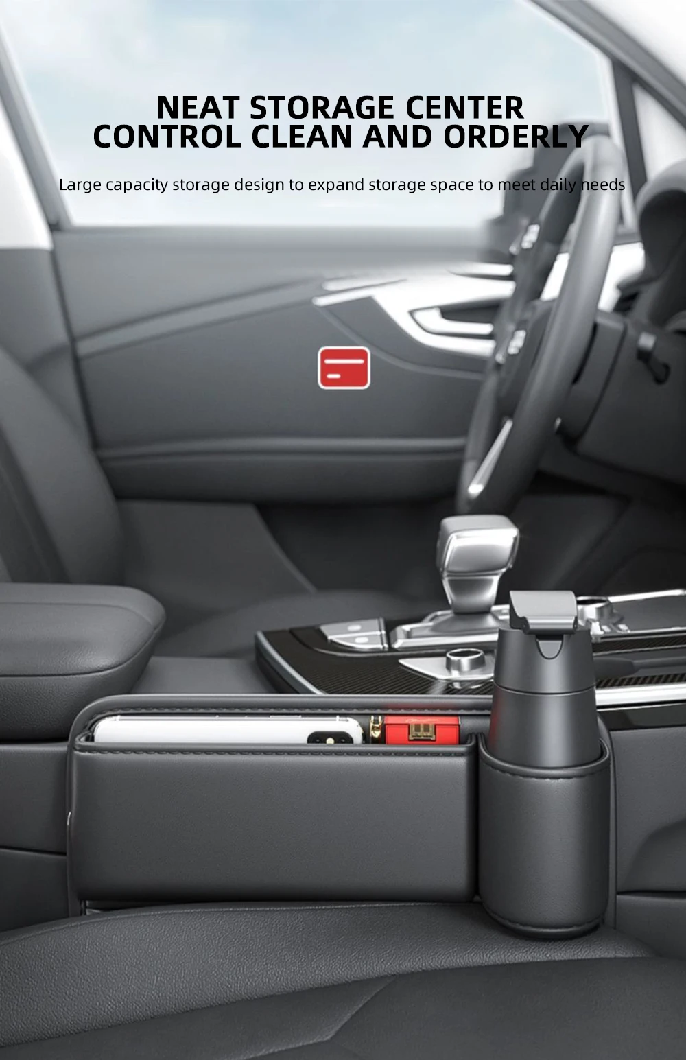 * 2-IN-1 FUNCTION. Car seat gap storage box + leak-proof plug.