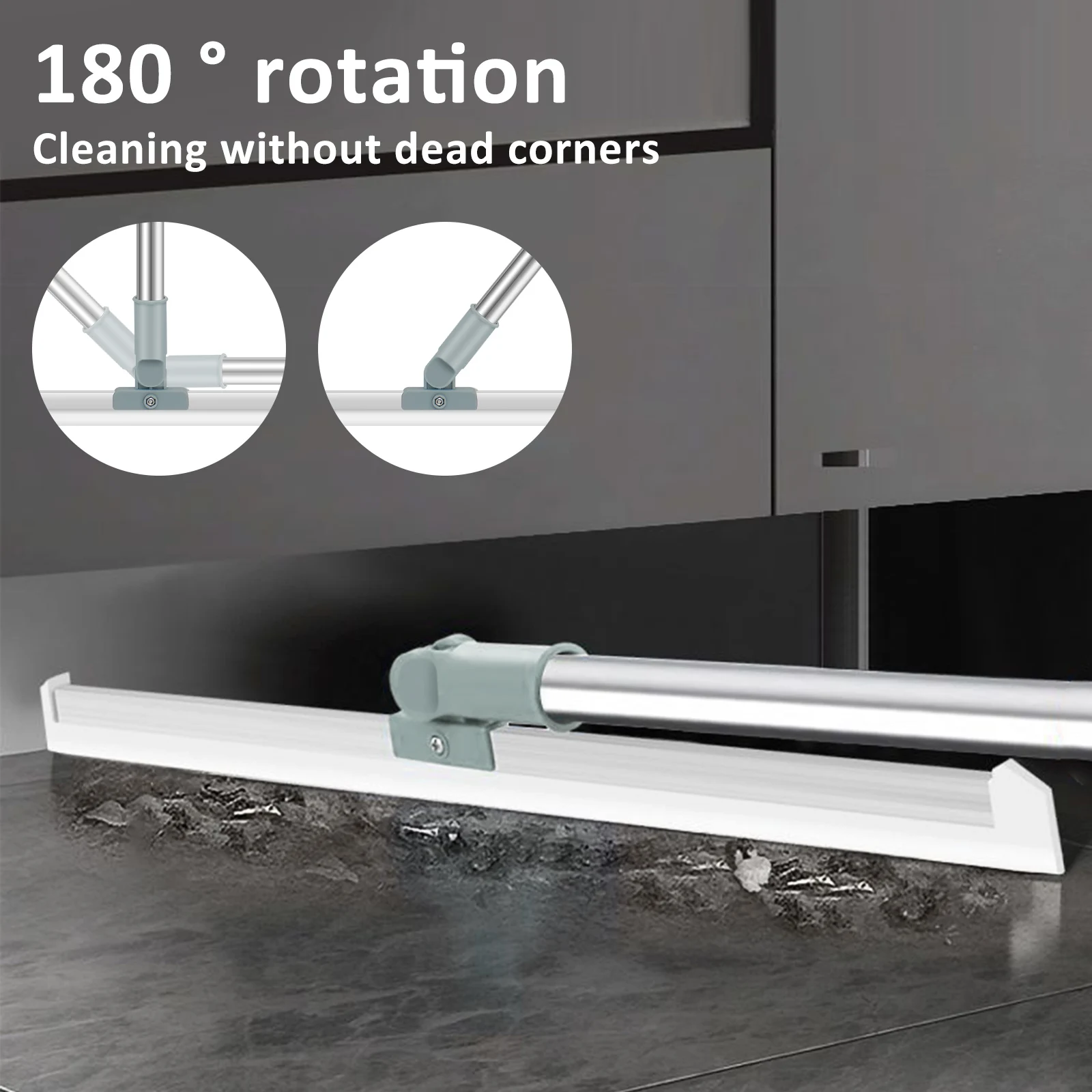 [180 ° Rotating Squeegee Head] This floor squeegee features a 180 ° rotatable connector joint making it better clean depressions and corners, including baseboards, bottom of the sofa, ceiling corner, gap behind the bed and other dead corners.