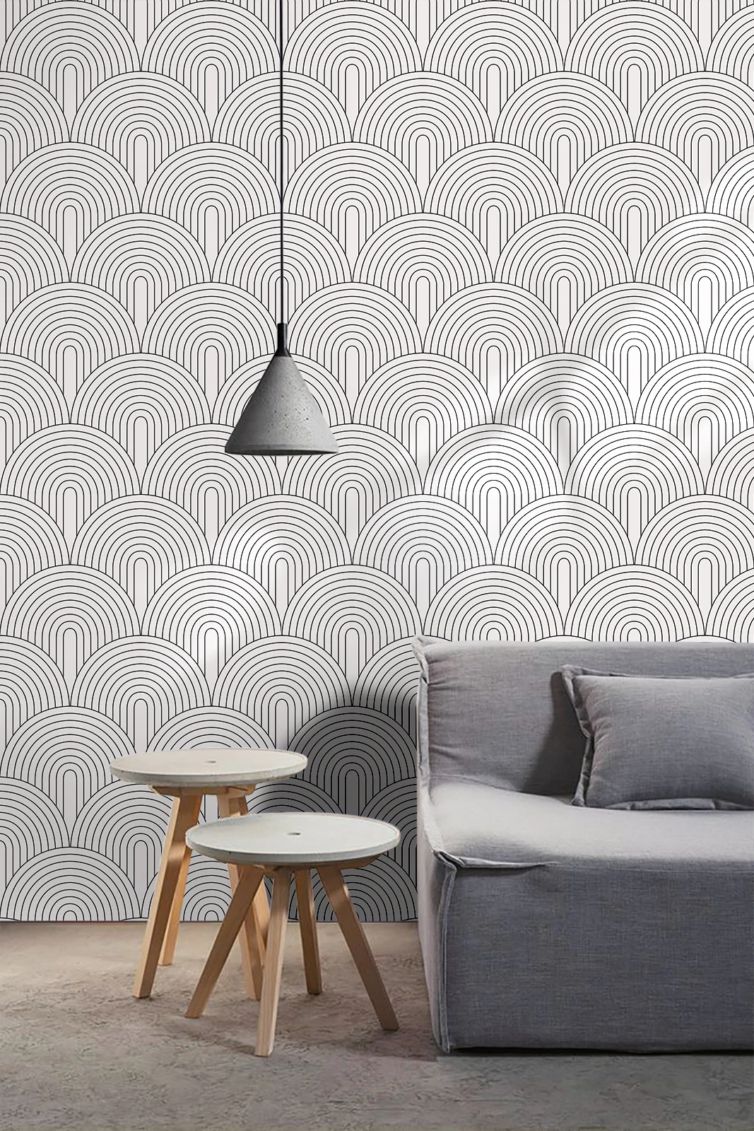 Product : Waterproof Abstract Rainbow Black/White Wallpaper Self Adhesive
