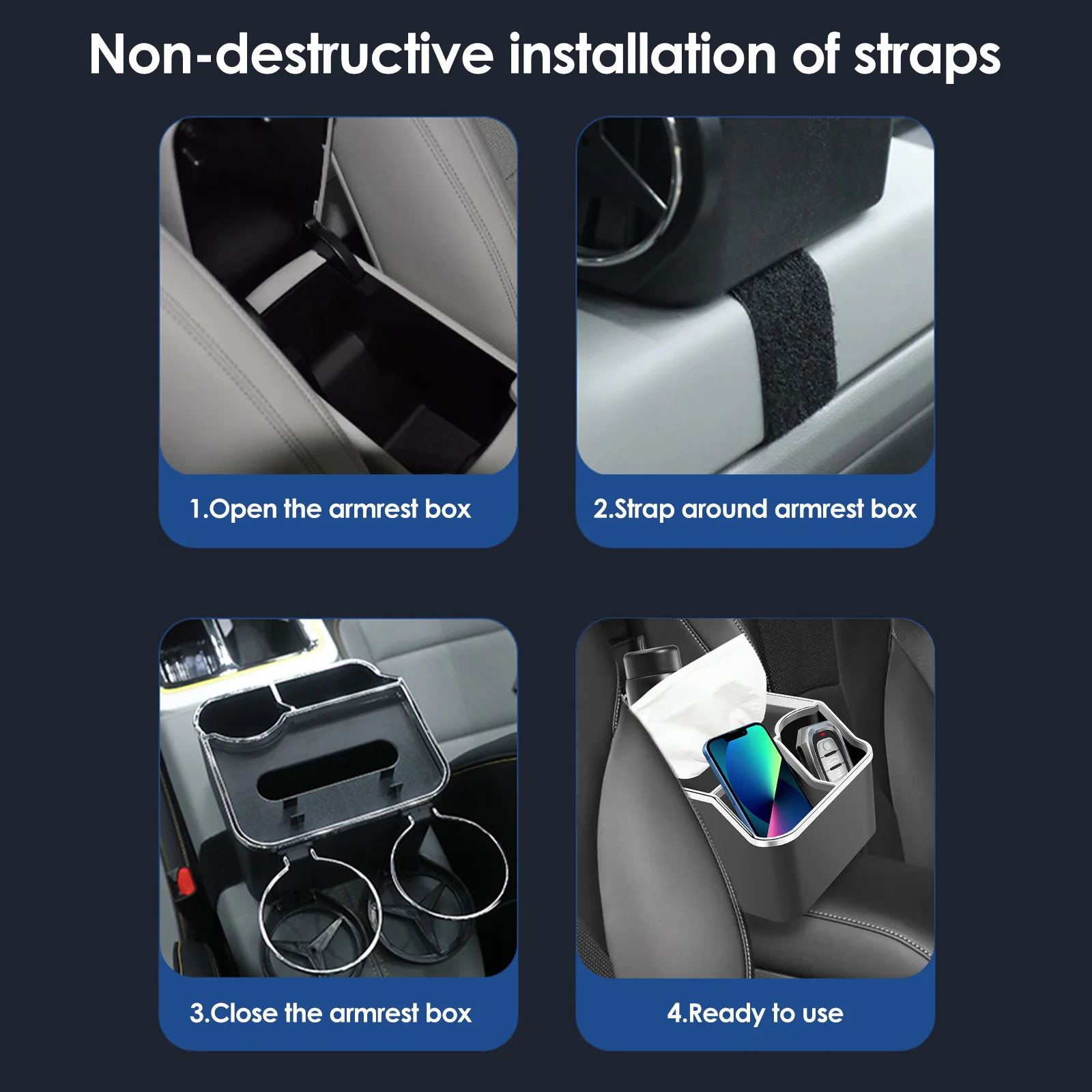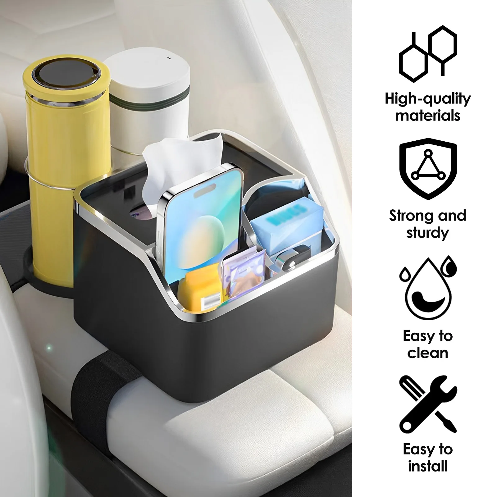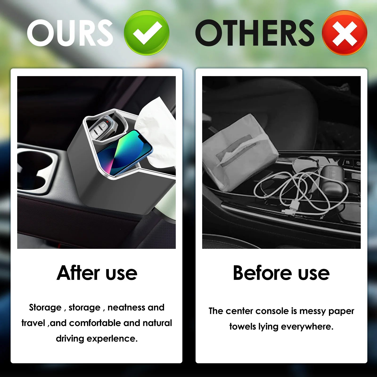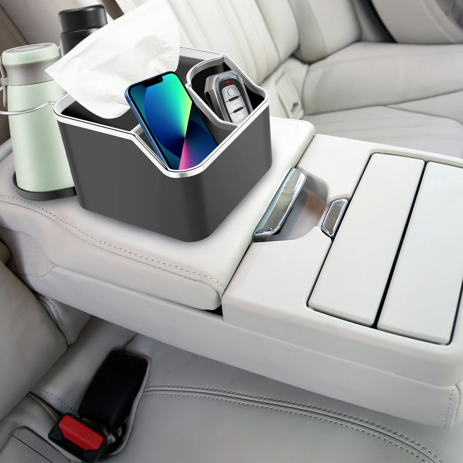 [Folding Cup Holder] This storage box is designed with 2 folding cup holders, reasonable use of limited space. It is suitable for holding paper towels, water cups, mobile phones, cards, keys, etc.