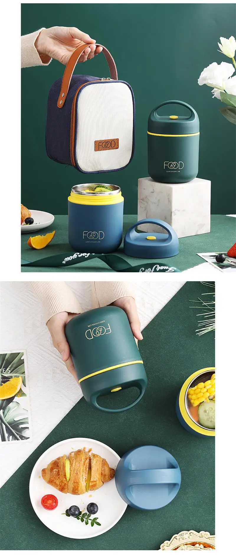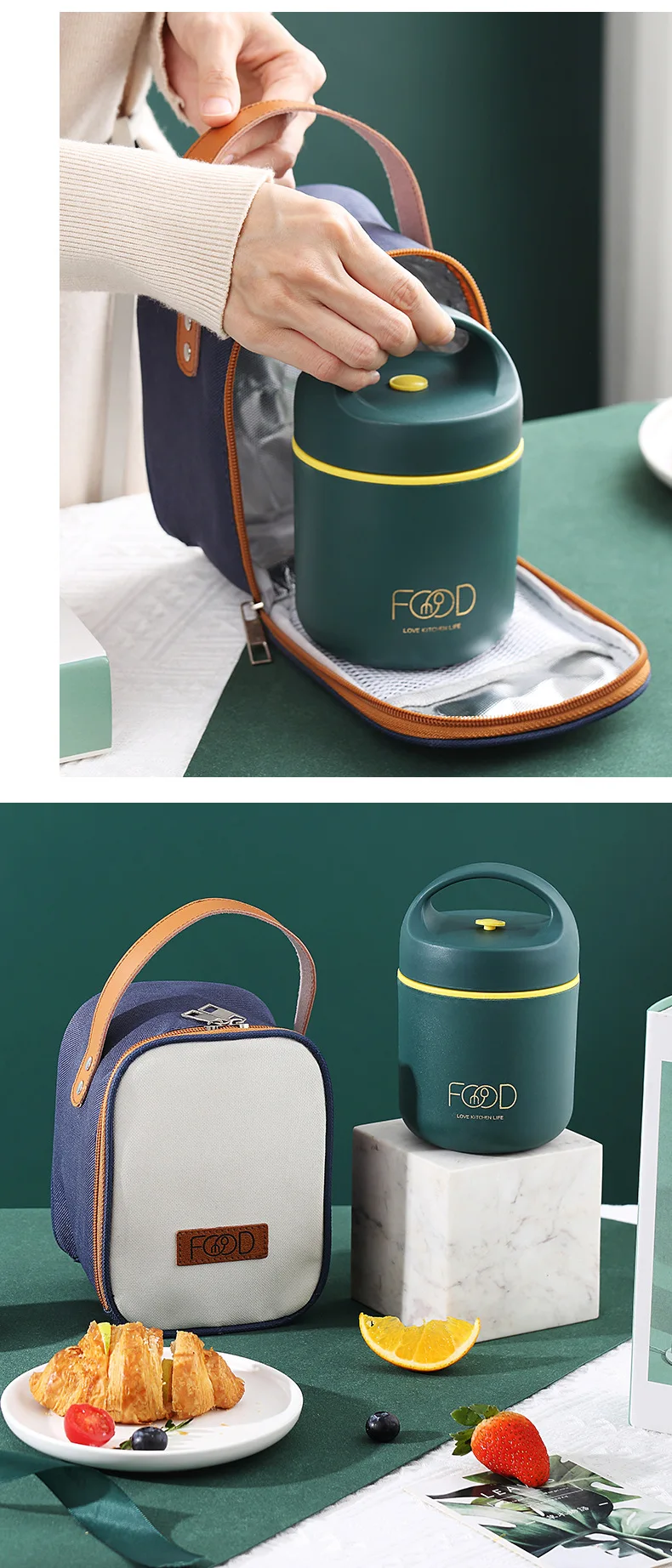 Children Warmer Bento Lunch Box Stainless Steel Soup Cup With Spoon Seal Heat Preservation Food Insulated Lunch Bag For Students