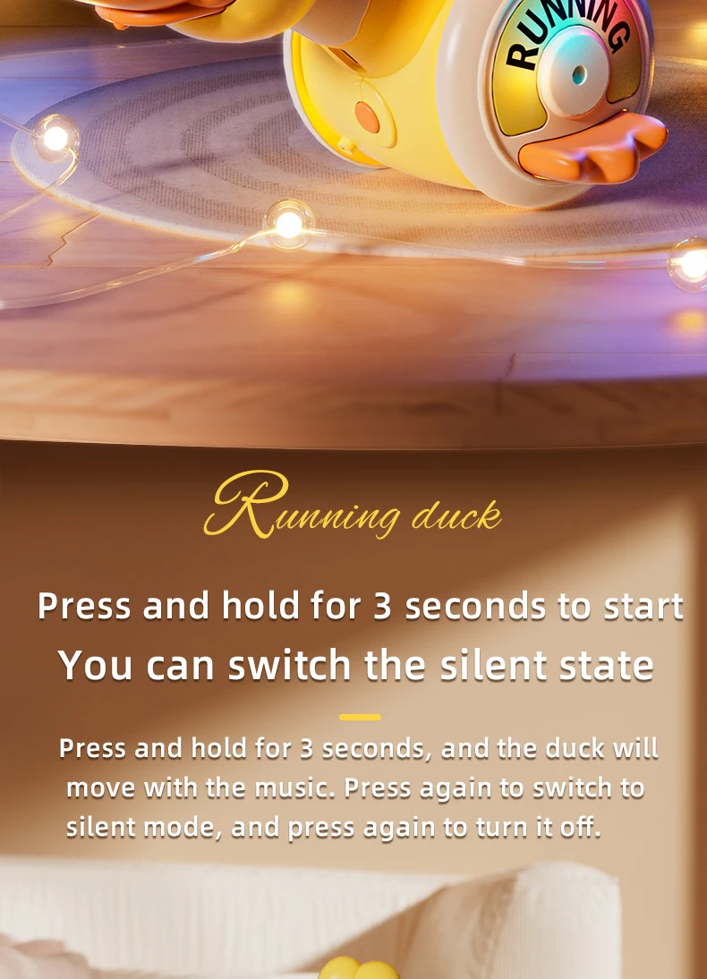 Fun Interaction: The duck emits cute sounds and flashing lights, increasing interactivity and fun, stimulating the baby's curiosity.