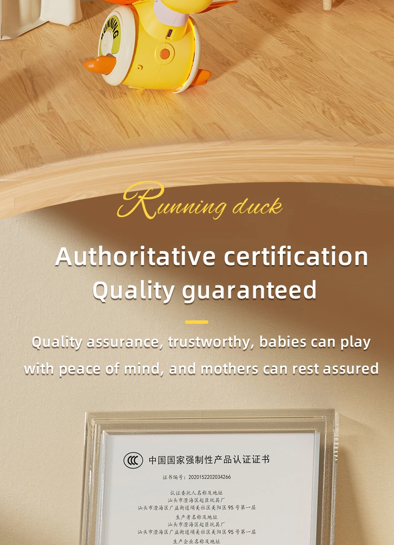Dynamic Attraction: The duck's electric rotation and movement attract the baby's attention, encouraging them to chase and explore, promoting the development of crawling skills.
