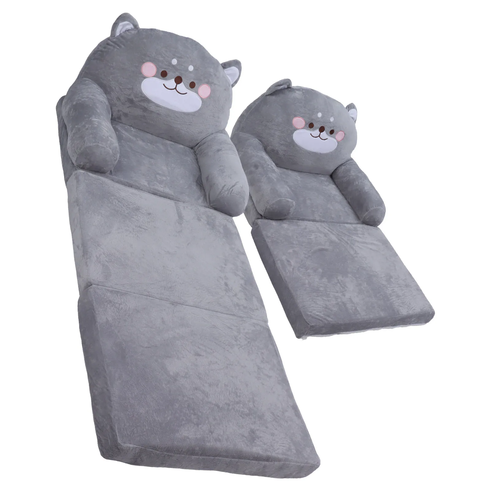 Kids Sofa Cartoon Gray Dog Style Foldable Wide Handle Soft Breathable Toddler Chair for Reading Relaxing Sleeping