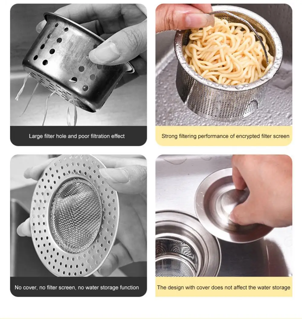 【Rapid drainage】 Strong filtration, dense filter screen, more convenient to 【Reusable】The product can be reused to reduce the pollution in the kitchen