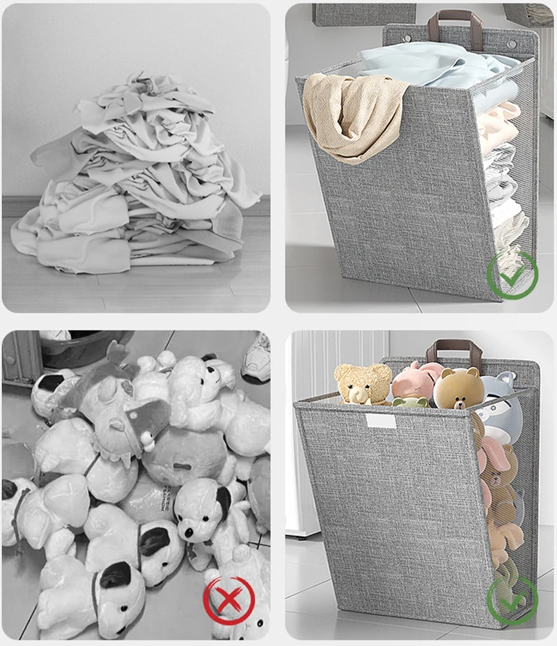 Space-saving Wall Hanging Design: Our clothes organizer bag, laundry hamper, and dirty clothes basket are designed to be easily hung on the wall, saving valuable floor space in your laundry room and bedroom.