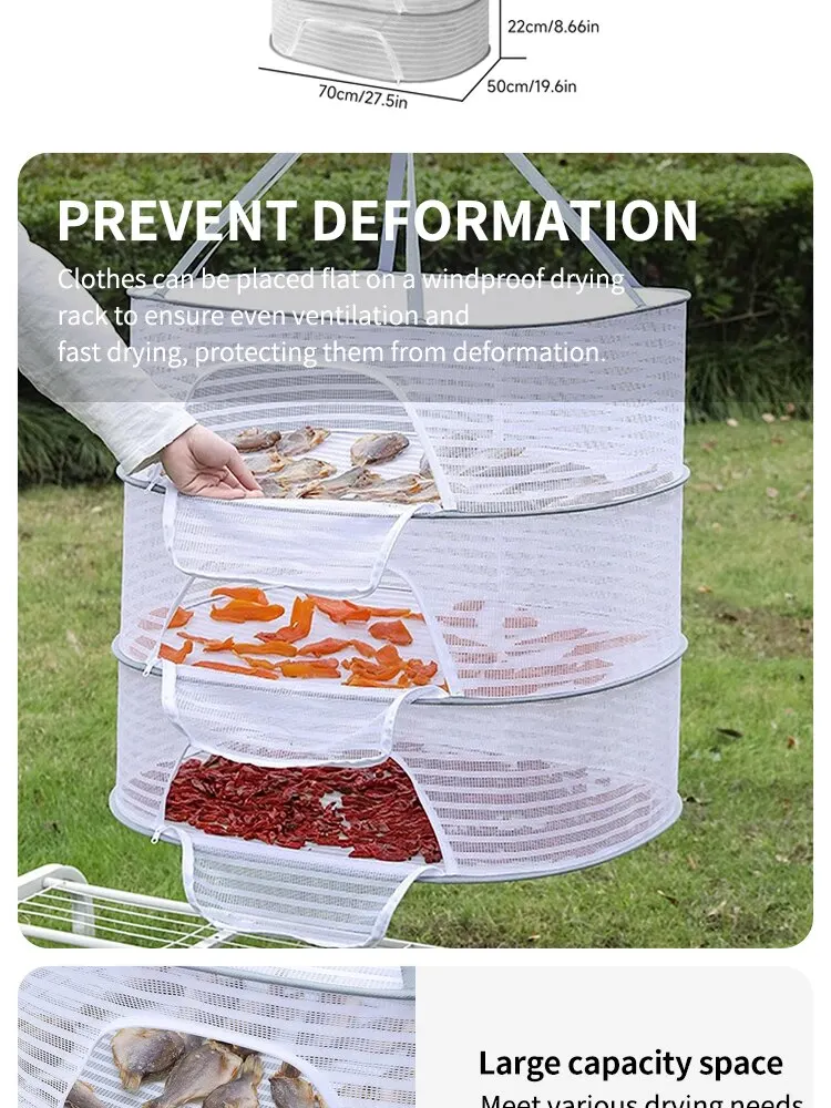 Application: Use it to dry dried fish, dried fruits and vegetables, or put it flat to dry woolen sweaters, underwear and socks.