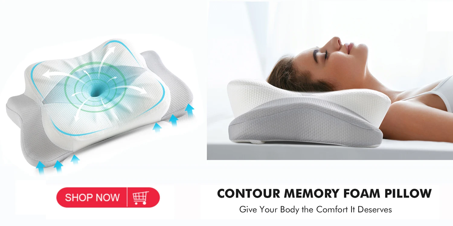 3. Contour Cervical Pillow :Proven contour design perfectly supports and aligns your head, neck, shoulder, and back. The cutouts on the side give your top arm a place to rest . Bringing a reduction of stress in the cervical vertebra and spine. Improving sleep and relieving neck and shoulder pain, discomfort rejuvenating your body.