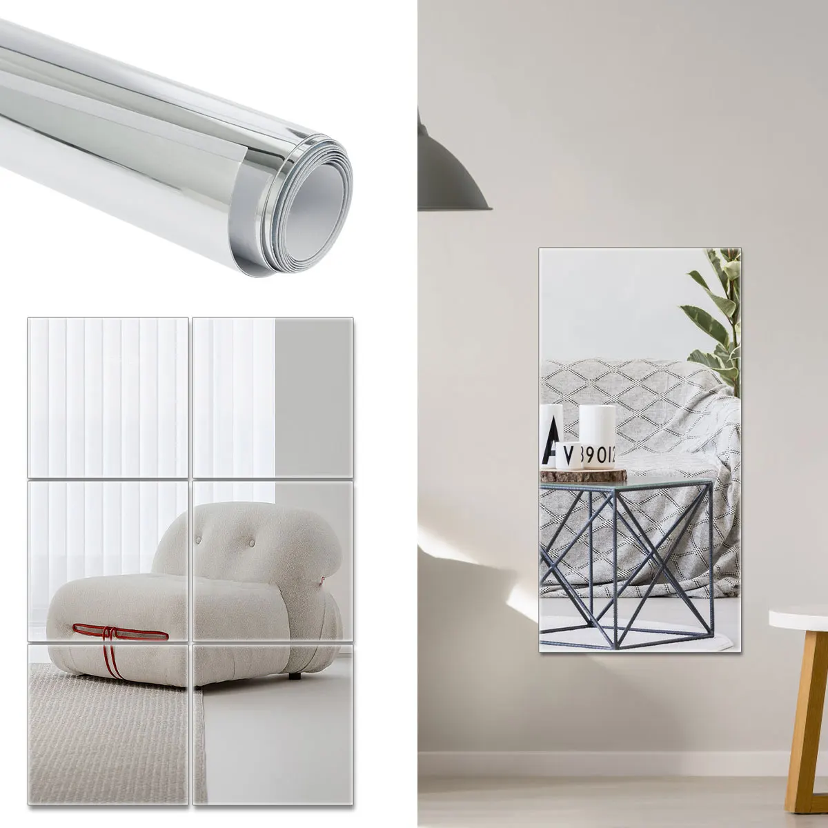 [Quality Material] This self adhesive mirror sticker is made of non-glass PET material, bendable, unbreakable, smooth surface, safe, lightweight, durable and waterproof.
