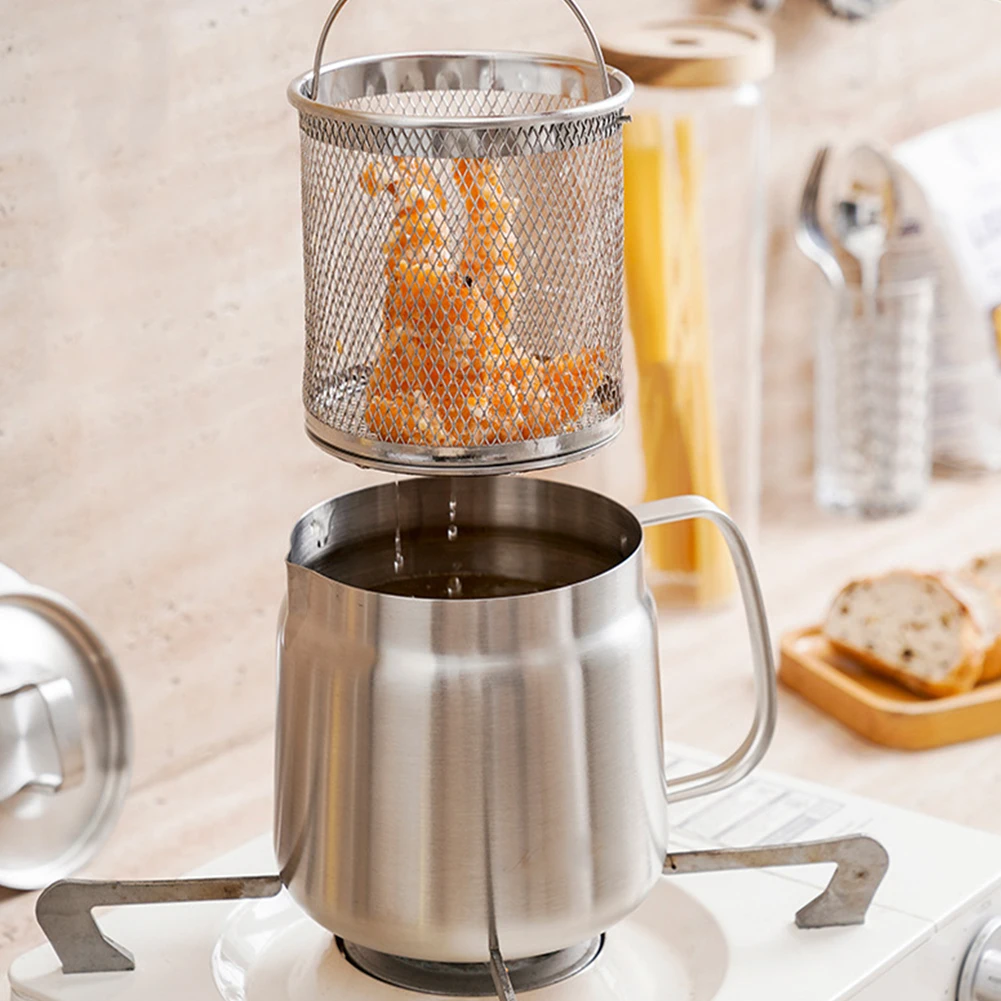 1.5/2L Deep Frying Pot Multifunctional Oil Filter Tank Large Capacity Stainless Steel Kitchen Fryer Pan Leak-proof Kitchen Tools Feature: Specification: Origin: Mainland China Pot Cover Type: Stainless Steel Cover Material: Stainless Steel Metal Type: Stainless Steel Capacity: 1-2L Product size: 18.5cm/7.28inx14cm/5.51inx12.5cm/4.92in Scene: Kitchen Note: