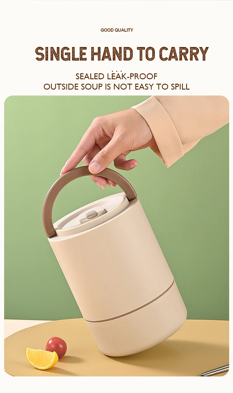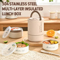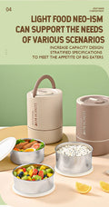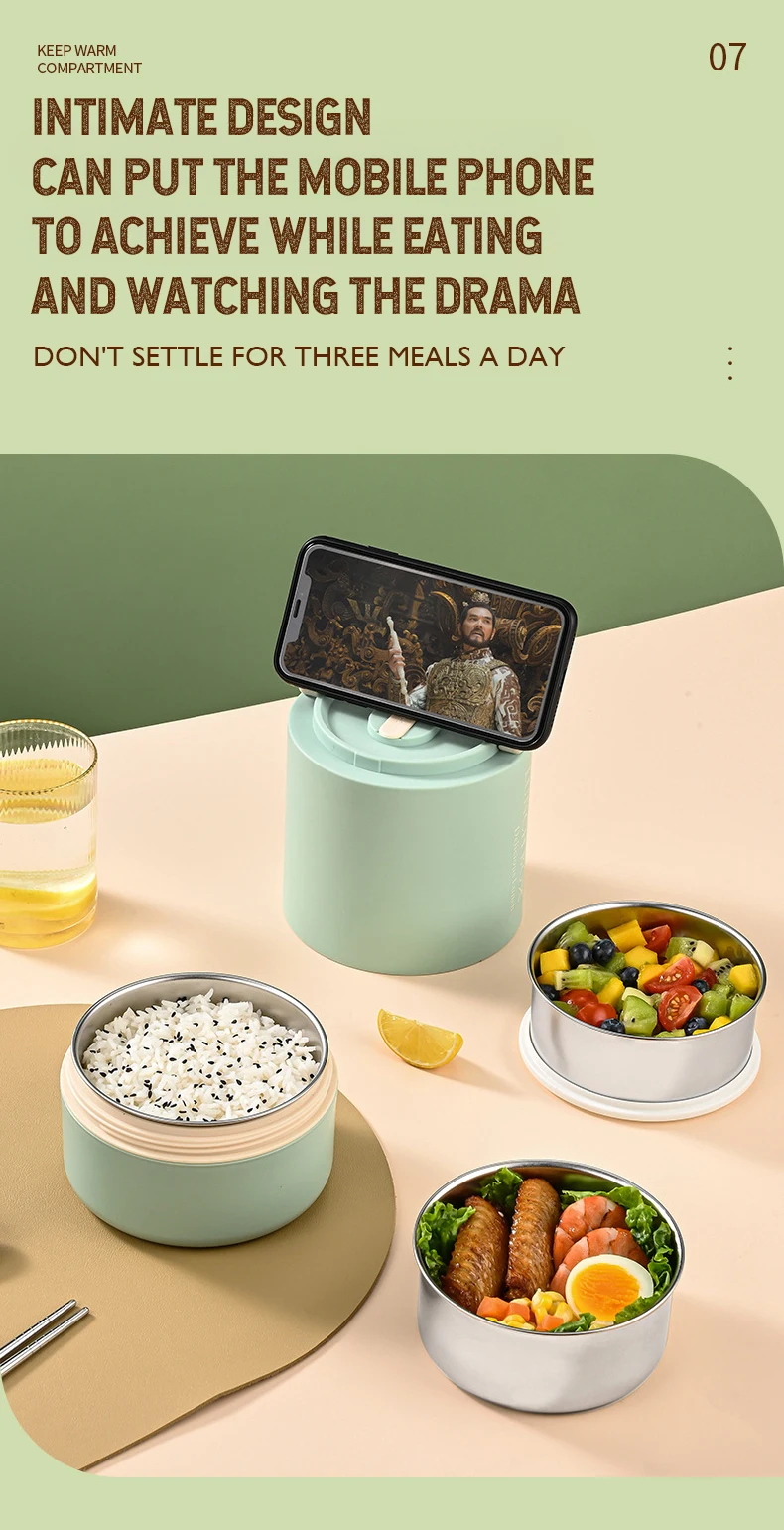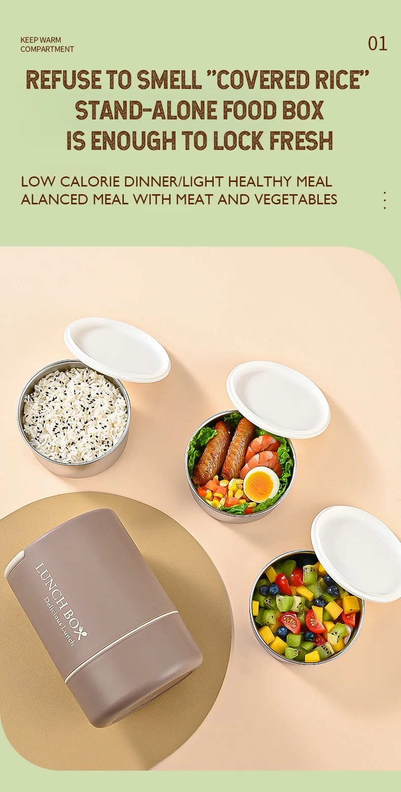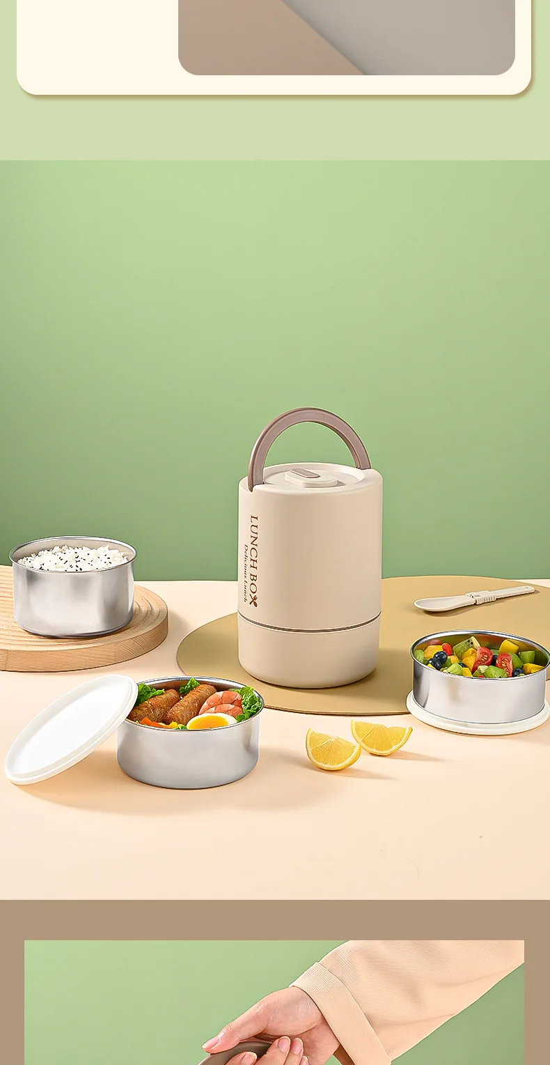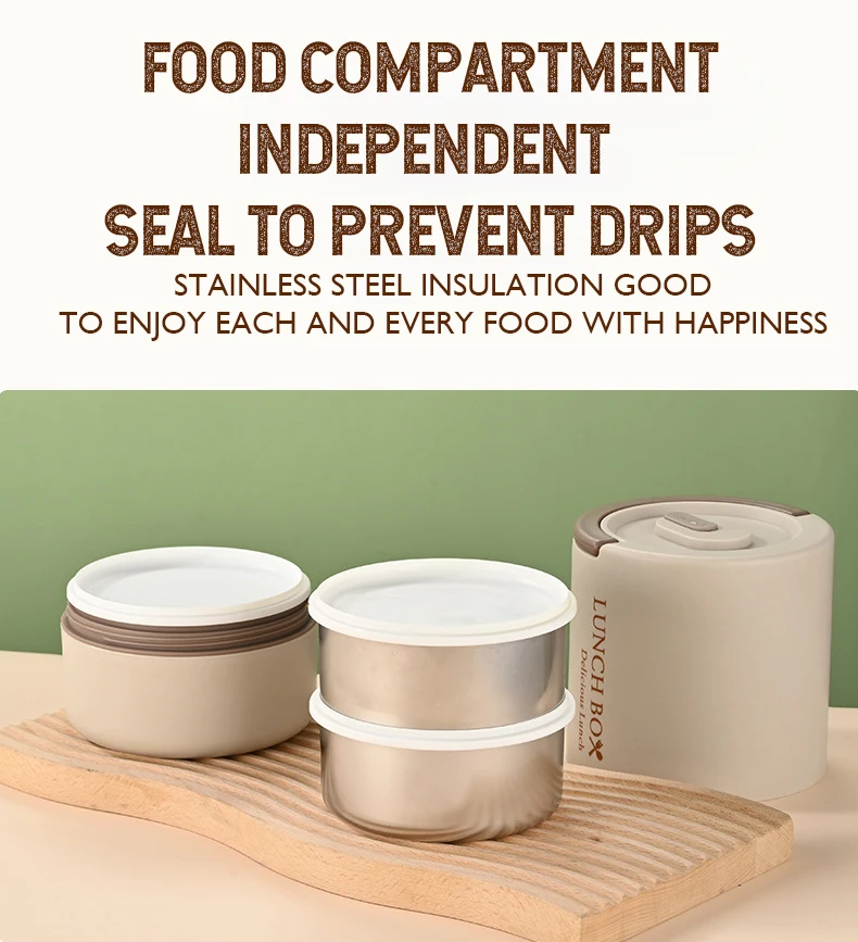 Insulated Lunch Container 304 Stainless Steel Sealed Multifunction Portable Round Thermal Bento Box with Thermal Bag