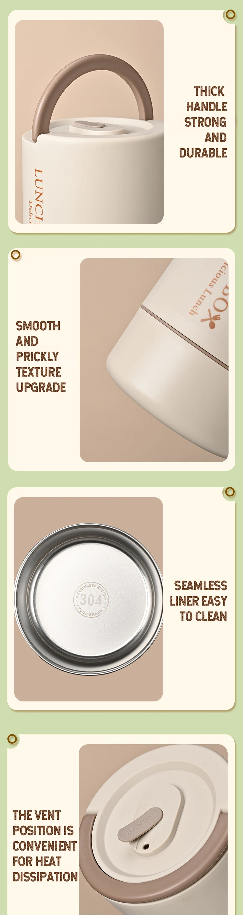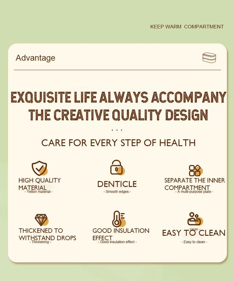 1. STAINLESS STEEL: 304 stainless steel is a material with excellent heat preservation properties, which can effectively maintain the temperature of food and keep it fresher.