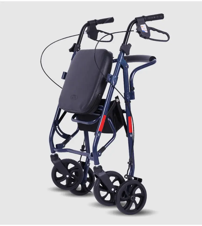 Foldable Elderly Walking Assist Chair Rehabilitation Training Portable 4 Wheels Leisure Shopping Cart Trolley Mobility Aids