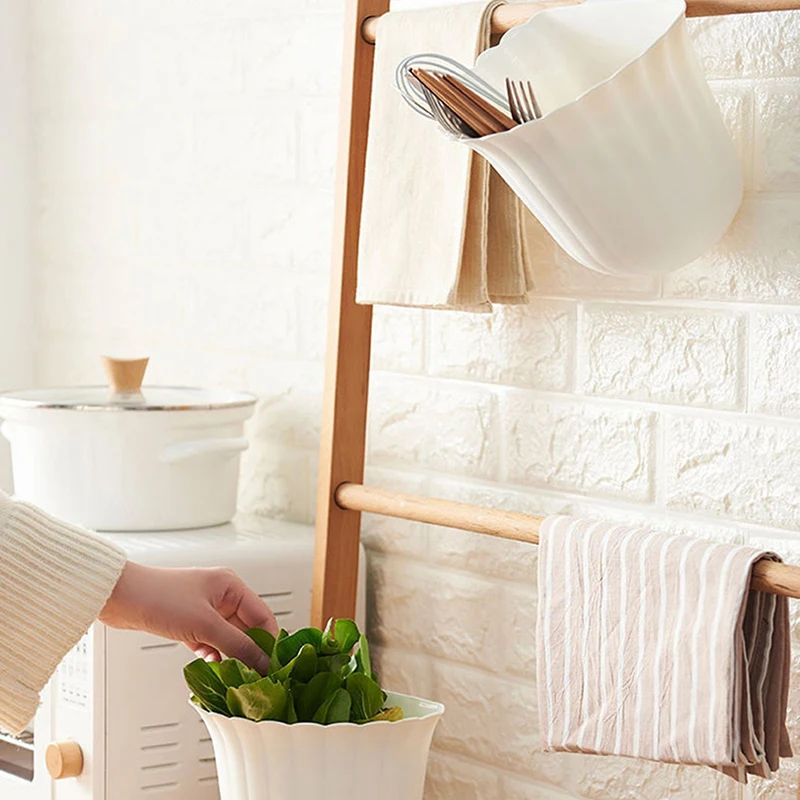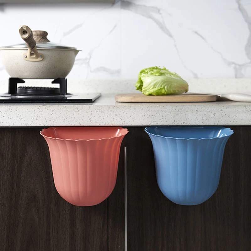 2. Hanging trash can specially designed for small kitchen, so you don' t have to walk to the big trash can, it is more convenient to throw away the trash.