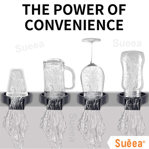 The Sueea® Rinserthoroughly rinses residue in seconds, with high-pressure water jets that reach where you can’t. From baby bottles to wine glasses to travel cups, it conveniently rinses virtually any drink ware, so you canspend less time soaking and scrubbing.